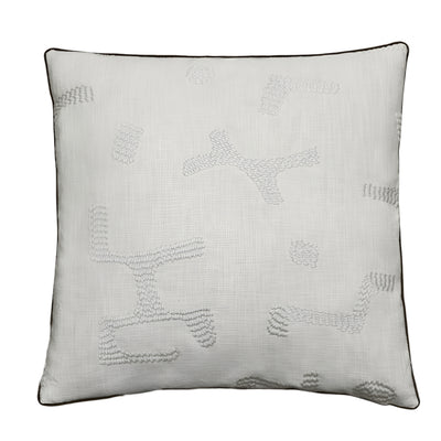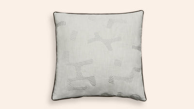 The Raphia cushion is made using Ceraudo's Raphia fabric design that was inspired by the fluid and visually engaging embroidery patterns created by the female textile artists of the Kuba Kingdom (now within the Democratic Republic of the Congo).