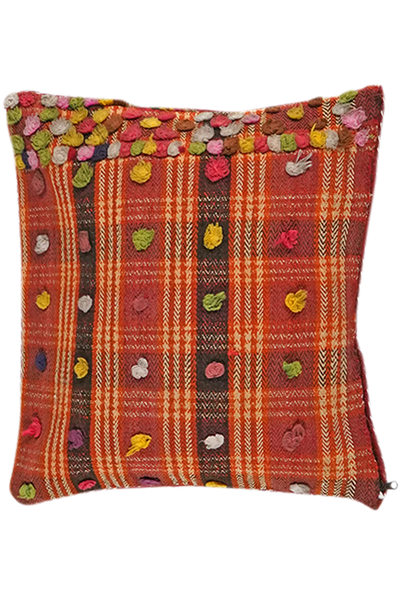 Our Kelim cushions are made from old, handmade Kelim pieces on the front and a jute and cotton blend on the back. Each cushion is unique in color, design, and pattern. Most Kelim used for the cushions consist of sheep wool. Sometimes cotton is also used as a base material. No synthetic materials are used. All used Kelim were woven by nomads or villagers for their own daily needs.