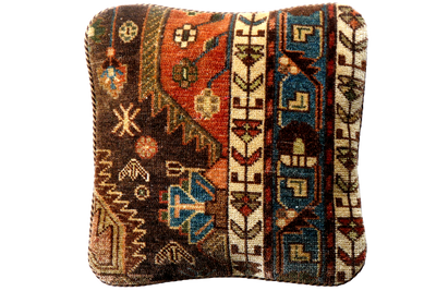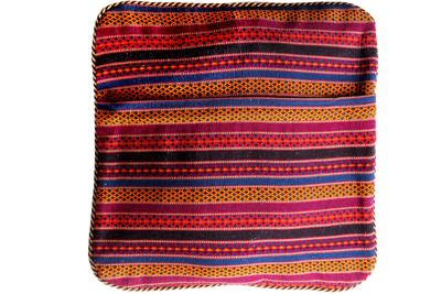 Our Kelim cushions are made from old, handmade Kelim pieces on the front and a jute and cotton blend on the back. Each cushion is unique in color, design, and pattern. Most Kelim used for the cushions consist of sheep wool. Sometimes cotton is also used as a base material. No synthetic materials are used. All used Kelim were woven by nomads or villagers for their own daily needs.