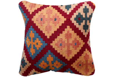 Our Kelim cushions are made from old, handmade Kelim pieces on the front and a jute and cotton blend on the back. Each cushion is unique in color, design, and pattern. Most Kelim used for the cushions consist of sheep wool. Sometimes cotton is also used as a base material. No synthetic materials are used. All used Kelim were woven by nomads or villagers for their own daily needs.