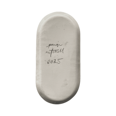 Fired once when dry, then signed and waxed on the base. The piece is then dipped into a glossy transparent glaze. It is then placed back in the kiln for one final 1240 degree centigrade firing.