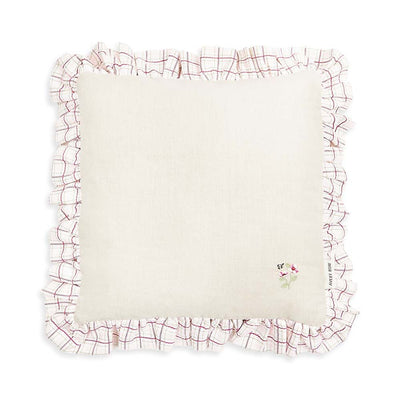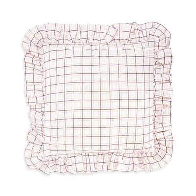 Square Linen Frill Cushion - Pink Check