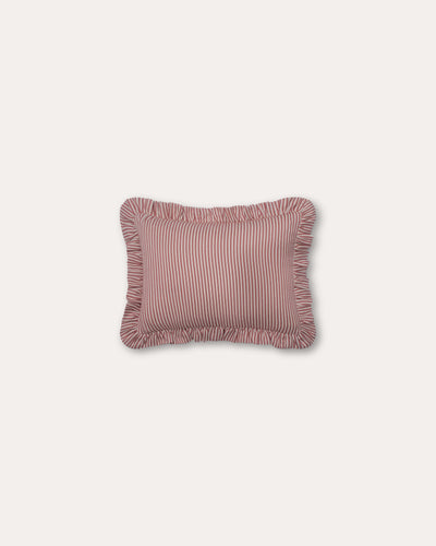 A beautifully versatile rectangular cushion with frill in Crabapple. 40cm x 30cm.