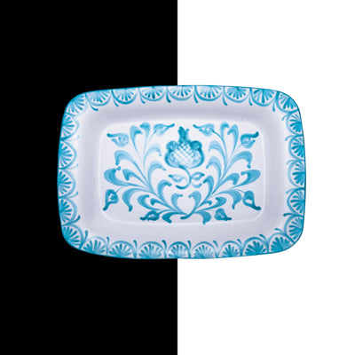 Adorned with traditional Granada designs, this spacious square platter offers a modern twist in the classic matte finish, making it ideal for showcasing a variety of dishes at your gatherings.