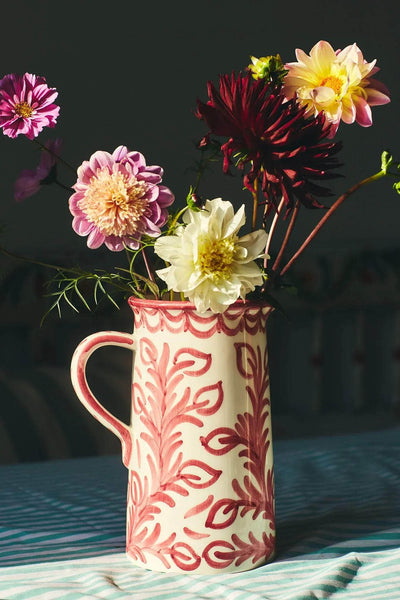 Hand-painted large pink jug, with a traditional 'repintado' design.