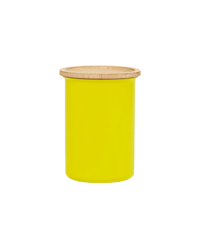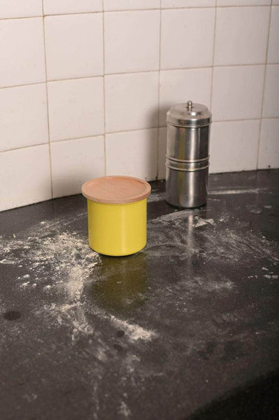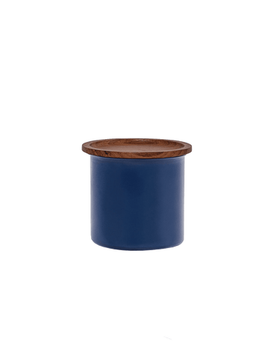 AYASA COLOUR is a stackable storage jar with an airtight wooden lid. Available in two sizes and four colours, each one is made from food-grade aluminum on a traditional spinning machine. The lid is hand-turned from Sheesham, an indigenous hardwood from India that is sustainably sourced. Made in food-grade aluminum Available in two sizes, this jar is airtight and perfect for storing dry goods.