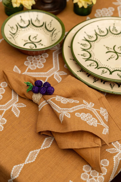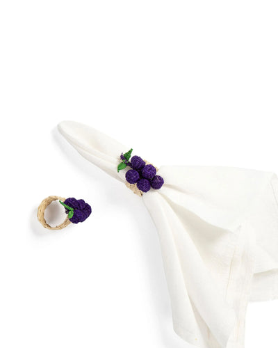 Hand-woven by artisans, the grape iraca palm napkin rings are a beautiful way to add a pop of colour and fun to your table. Available as a set of four, other fruit designs available.