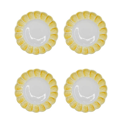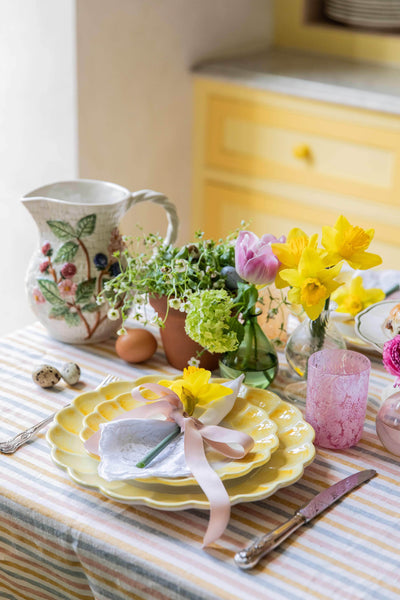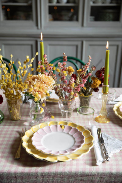 Working with an archive 1950s design, Skye McAlpine Tavola've created Skye McAlpine Tavola's dream scalloped plates. Available in strawberry gelato pink and custard yellow - mix and match the two colours together or go for a complete set in a single colour palette.  Each plate is handcrafted and hand-painted by artisans in the Veneto region. Sold as a set of four.