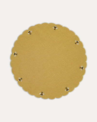Add a charming touch to your table with the Bee Placemat. With a delicate embroidery of small bees and a wavy finish, this round placemat combines elegance with a playful touch. Perfect for outdoor lunches or to add a special touch to your meals.