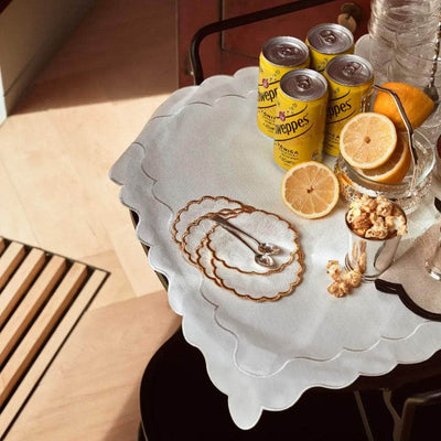 Transform your table with the White Wavy Placemat. This elegant rectangular placemat, made from linen and cotton, features a blue embroidery that adds a touch of sophistication. Perfect for daily use or special occasions, this product is ideal for those seeking elegance and style in table décor. Pair it with the wavy napkins for a harmonious presentation.