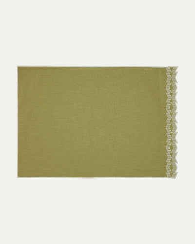 Linen-Cotton Blend Placemat with Embroidered Geometric Detail