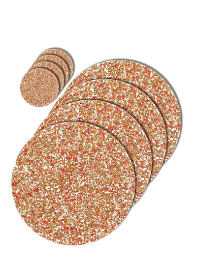The range is made from a mixture of cork and waste materials from the production of sandals. The collection includes coaster sets and placemats. They are colourful and practical as well as helping to give previously discarded waste a new lease of life.