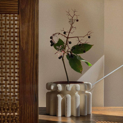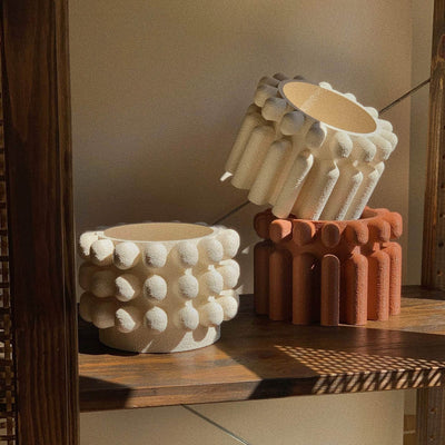 This textured planter is 3D printed using recycled PLA - a biodegradable and eco-friendly material derived from renewable resources like cornstarch or sugarcane.