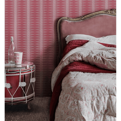 Available in a cosy "snug red" or a very pretty teal on pale pink, Indian Stripe is a warming textural print inspired by woven fabrics of Southern Asia.