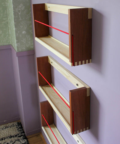 Yep, that’s a bungee cord. And not only does it give these modern-vintage style bookshelves a pop of colour (of your choice - see options below), but its flexibility makes it easier to get books in and out and allows for the storing of a fair few more books than you might think.