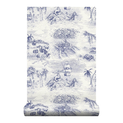 Full of the spirit of fictional whimsy, Navigo carries many detailed illustrations of adventurous buccaneers. The design is created from Lauren’s original pen drawings and is based on the classic Toile de Jouy designs of 18th century France.