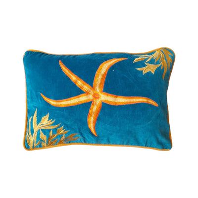 Bring the joy of the coast into your home with these hand-embroidered cushions, featuring vibrant seaside-inspired designs. Each cushion showcases playful marine motifs — from fish and shells to starfish and coral - meticulously embroidered in bright, cheerful colours. Crafted with care by skilled artisans, these cushions add texture, personality, and a fresh, summery feel to any sofa, chair, or outdoor seating area.