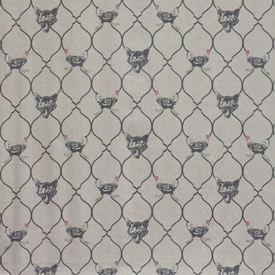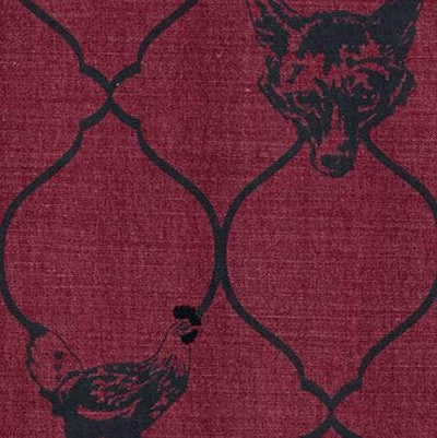 Two sworn enemies in one quirky print: the fox and the hen come together on a chicken-wire inspired trellis.
