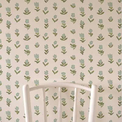 Little Wild Tulips Wallpaper - Misty Green
