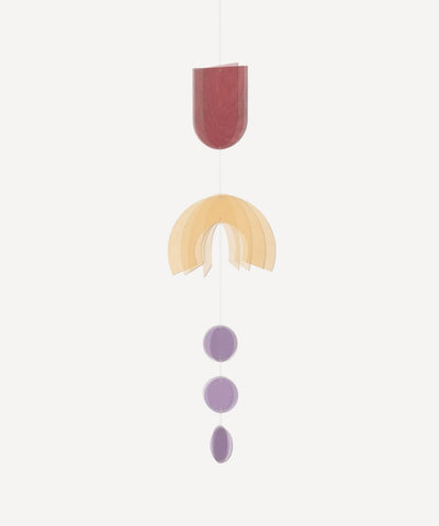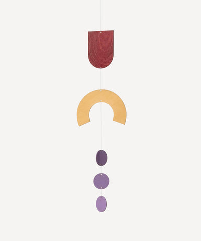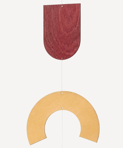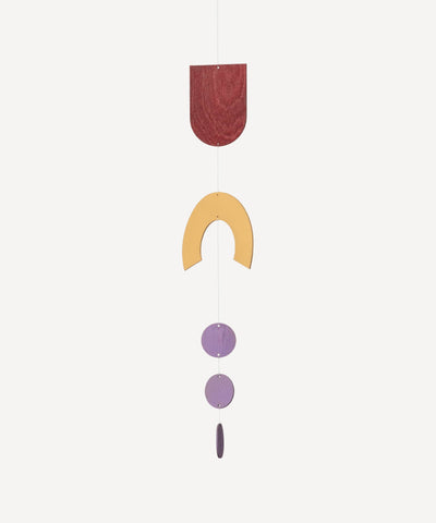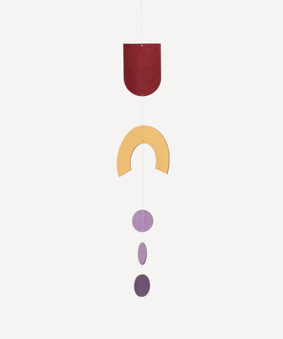 This mobile brings you joy and inspiration. The slightest breeze makes the forms rotate and the shapes move and play in space. Constructed with laser cut wood, the pieces are then painted and assembled by hand.