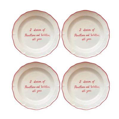 Sveva's Home Ceramic "I dream of Panettone and Tortellini all year" Scalloped Plate Set of 4