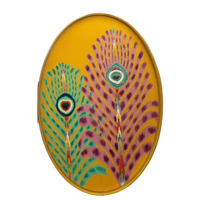 Les Ottomans x Matthew Williamson Hand-Painted Peacock Iron Tray - Yellow