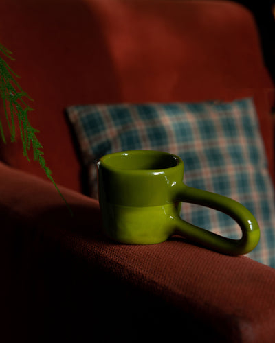 Atelier Burrata's signature medium-sized cup with its characteristic oversized handle. Each piece is unique and made to order by hand with love in the Netherlands — shapes and dimensions will vary slightly.