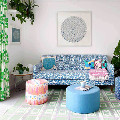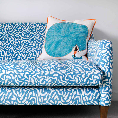 Hand screen printed in a beautiful classic blue, this abstract print is inspired by an aerial view of golf courses.