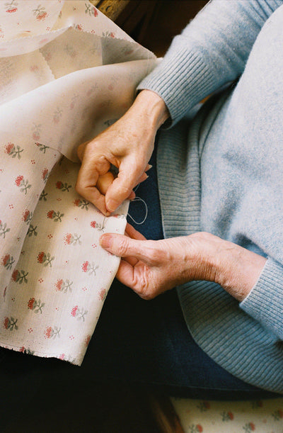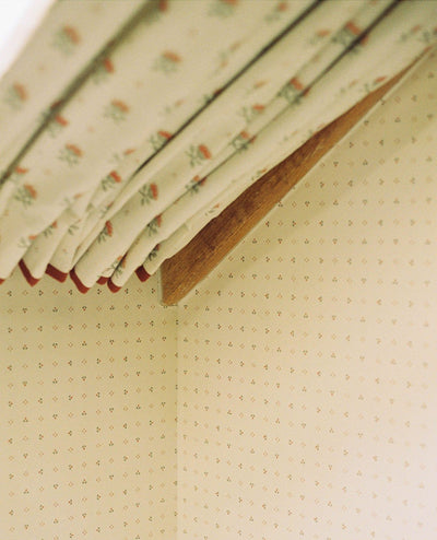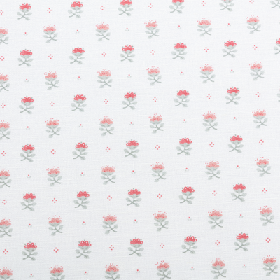 After Blume was drawn, the design was sent to India where it was hand-carved onto wooden blocks and printed on linen. Minnie Parker had hoped to keep production in the UK, but the natural imperfection of the block-printed Blume improved the design, and the best flowers from that journey to India and back made it onto the final artwork.