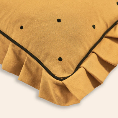 The Dolce Cushion is part of Ceraudo's in-house range, The Dolce Collection. They have used the traditional pasticceria inspired Dolce Dots fabric and added an embroidered dot and elegant pleated trim. The traditional pattern offers timeless elegance and versatility, while the eye-catching colours allow you to create a unique addition to any interior.