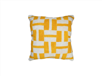 A handmade cushion, made with 100% organic cotton in yellow and ecru from deadstock Tawul towels and in the ELDORADO The studio signature chequered style.