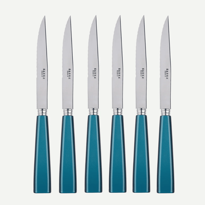 If you are looking for elegant but different cutlery, the icon collection is for you. With its pure lines and 21 colors with slightly retro highlights, you will definitely find the cutlery that will suit your table. Part of the original and best selling Icône collection. A set consisting of 6 steak knives with notched stainless steel blades to make cutting meat easier. With its slim and elegant design, this steak knife creates a sensation at the table for everyday meals or special occasions.