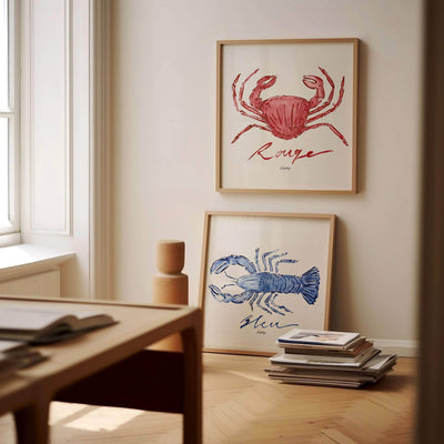 "Lobster Bleu," translating to "Blue Lobster" in French, is a minimalistic painting available in both square and landscape format. With its bold blue tones, it is designed to evoke the deep blue of the ocean. Perfectly paired with our matching "Crabe Rouge" print.