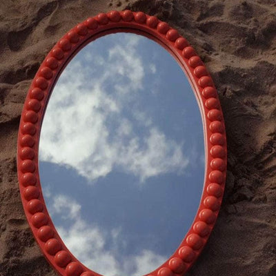Mirrored glass set within a solid wood oval mirror embellished with wooden bobbins and finished in a variety of beautiful painted and lacquered colours.