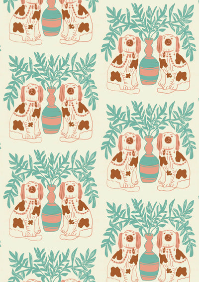 Wallpaper is a fantastic way to inject a sense of fun into your home. I have always loved the Staffordshire dog figurines, since first noticing the sweet pair sitting atop my Nan’s fireplace when I was a child.
