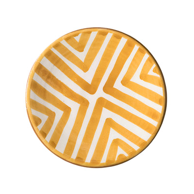 Geometric patterns, radiating lines, and flowing strokes across glazed clay... Each piece is individually handmade and hand-painted by artisans in Morocco, making every one truly unique—natural imperfections are a hallmark of its artisanal nature.