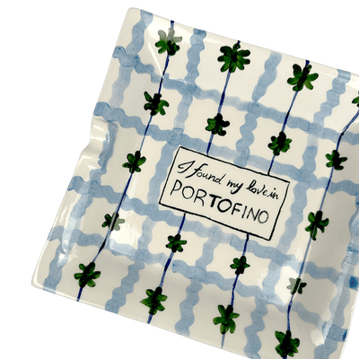 Bring the charm of Portofino into your home with this elegant ashtray, inspired by Dalida's famous song. Measuring 17x17 cm and meticulously hand-painted, it features the romantic and nostalgic inscription "I found my love in Portofino."