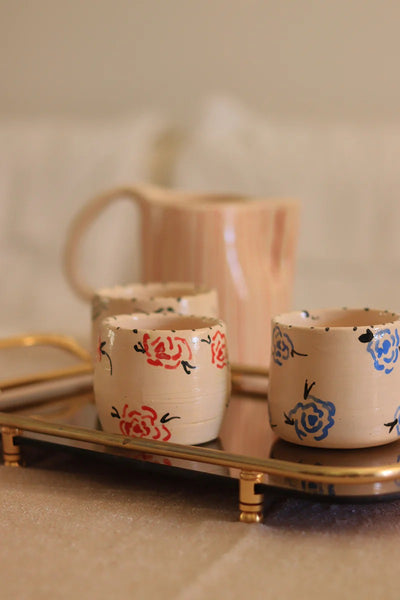 Thrown by hand on the pottery wheel and delicately adorned with our signature roses, each mug is a unique expression of artistry and care. The smooth, curved form feels just right in your hands, while the subtle floral detailing adds a timeless, romantic touch.