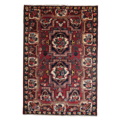 These carpets are knotted in the region around the city of Isfahan in central Iran by Bakhtiari, some of whom are still nomadic. These carpets are known for their rustic appearance, durability, and heavy weight. Bakhtiar carpets are available with the garden motif, known as "Khesti," but also in other variations with floral and geometric patterns.