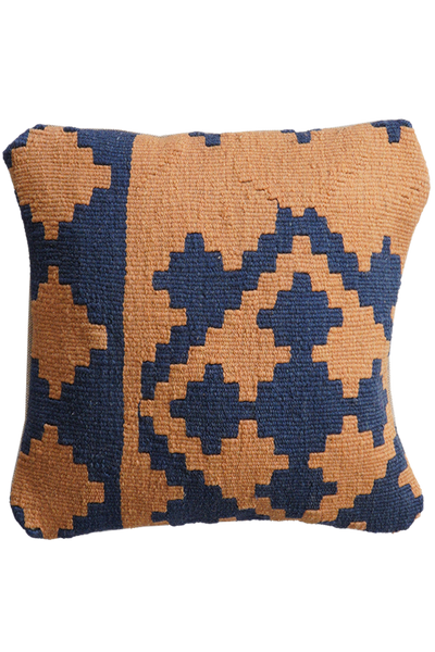 These kilim pillows are made from old handmade kilim pieces on the front and a jute and cotton blend on the back. Each pillow is unique in color, design, and pattern. Most of the kilim used for the pillows are made from sheep's wool. Sometimes cotton is also used as the base material. No synthetic materials are used. All used kilim were woven by nomads or villagers for their own daily needs.The pillows are sent without filling.