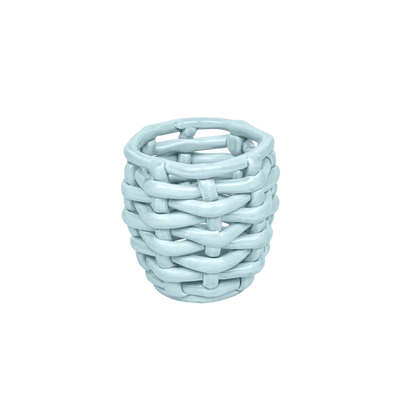 Handwoven sky blue ceramic basketweave pot. Use this glazed planter for your plant pots or as a pot to hold anything around the house, from a kitchen utensils holder to storing paintbrushes or toothbrushes.