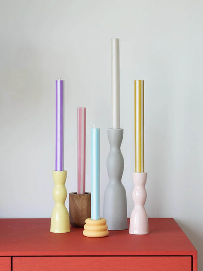 Elevate your dining table with the Stripes Dinner Candles. Yod&Co are proud to say these hand-poured candles are Fairtrade, made from 100% Stearin Wax. Available in a variety of colourways, sold in a box set of 4.