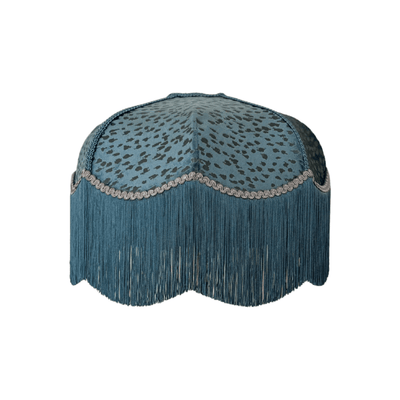 Teal-velvet lampshade with ivory fringe