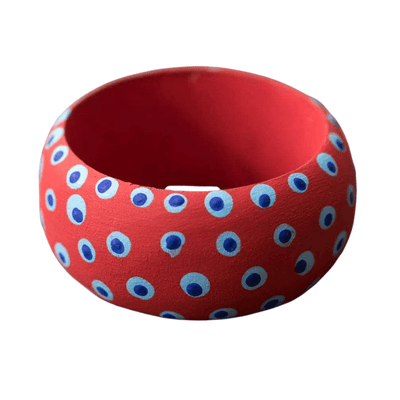 This red and blue wooden napkin holder is handmade and hand painted by artisans in Oaxaca, a well known region in Mexico for its craft.