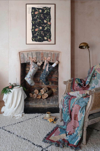 The dark floral Midnight Blooms print is now available in a beautiful quilted, linen Christmas Stocking.