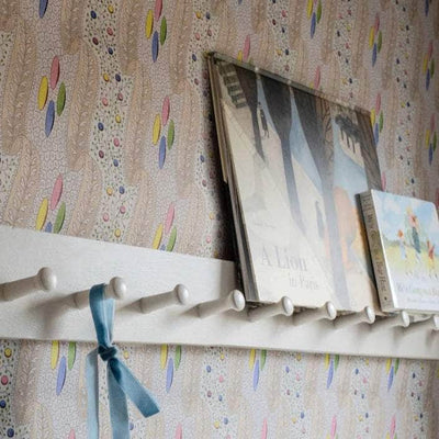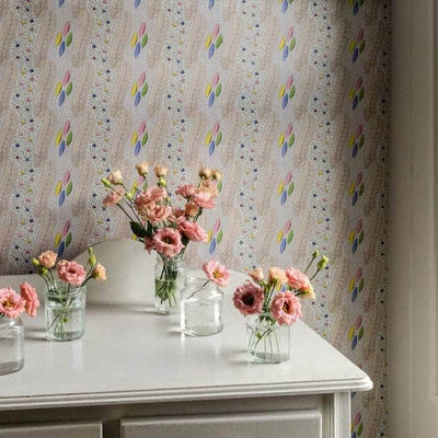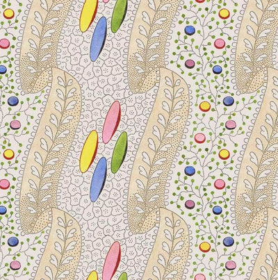 Bon Bon wallpaper. Step into a world of pure imagination with our 1830s delicate printed textile design. This whimsical pattern features playful candy-colored spots and intricate, pointillist lace-like details. Vibrant, playful, and full of wonder, this timeless design seamlessly blends antique charm with contemporary flair. Original and unique, it's sure to brighten any room.