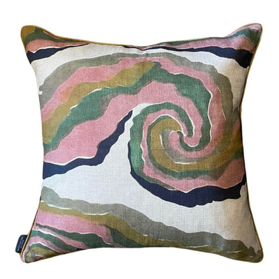 Swirls cushion. The beautiful print Swirls print has been made into a luxurious Linen cushion. Originally created in 1931, this unusual archive print captures a beautiful fluid movement. With its natural colours and abstract geological pattern , it remains calming and modern today.