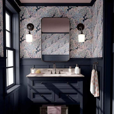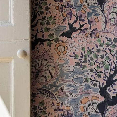 This wallpaper makes a sweet & fragrant statement in our pretty Dawn Colour way. Enjoy the playful motifs in tints of  sky, lilac, violet, peach, rose & mint.