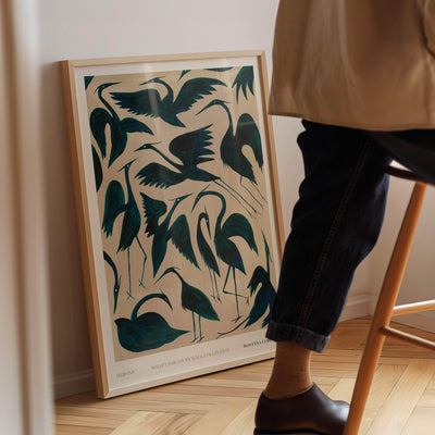 Originally created in gouache paint, this Heron wall print is inspired by Rosanna's lockdown walks and some friendly herons from her local park.