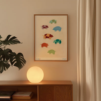 Inspired by the free-roaming pigs of the scenic New Forest countryside, this print captures the playful spirit of these happy animals, bringing a touch of nature's charm into your living space.